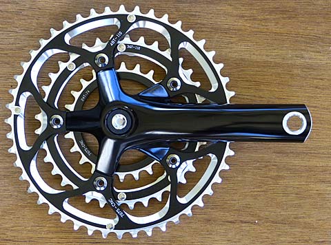 ![]() 24t Dimension & 36-46 SunTour rings $149 Not Ramped and Pinned | Ordering, Payment, Shipping and Contact info. Bolt Circle Diameter (BCD) The middle and outer ring are 110mm BCD, inner is 74mm. BB spindle; Square taper. 118mm produces the same chainline as Shimano 105/Ultegra triples. 107-110mm works well when used as a double. You can get a 320 g. Shimano UN-55 cartridge BBs from your local bike shop for about $30. Or I can provide a 108mm, 226g. ProMax SC-1 for $29. Q factor; 170mm with Shimano 118mm spindle. |